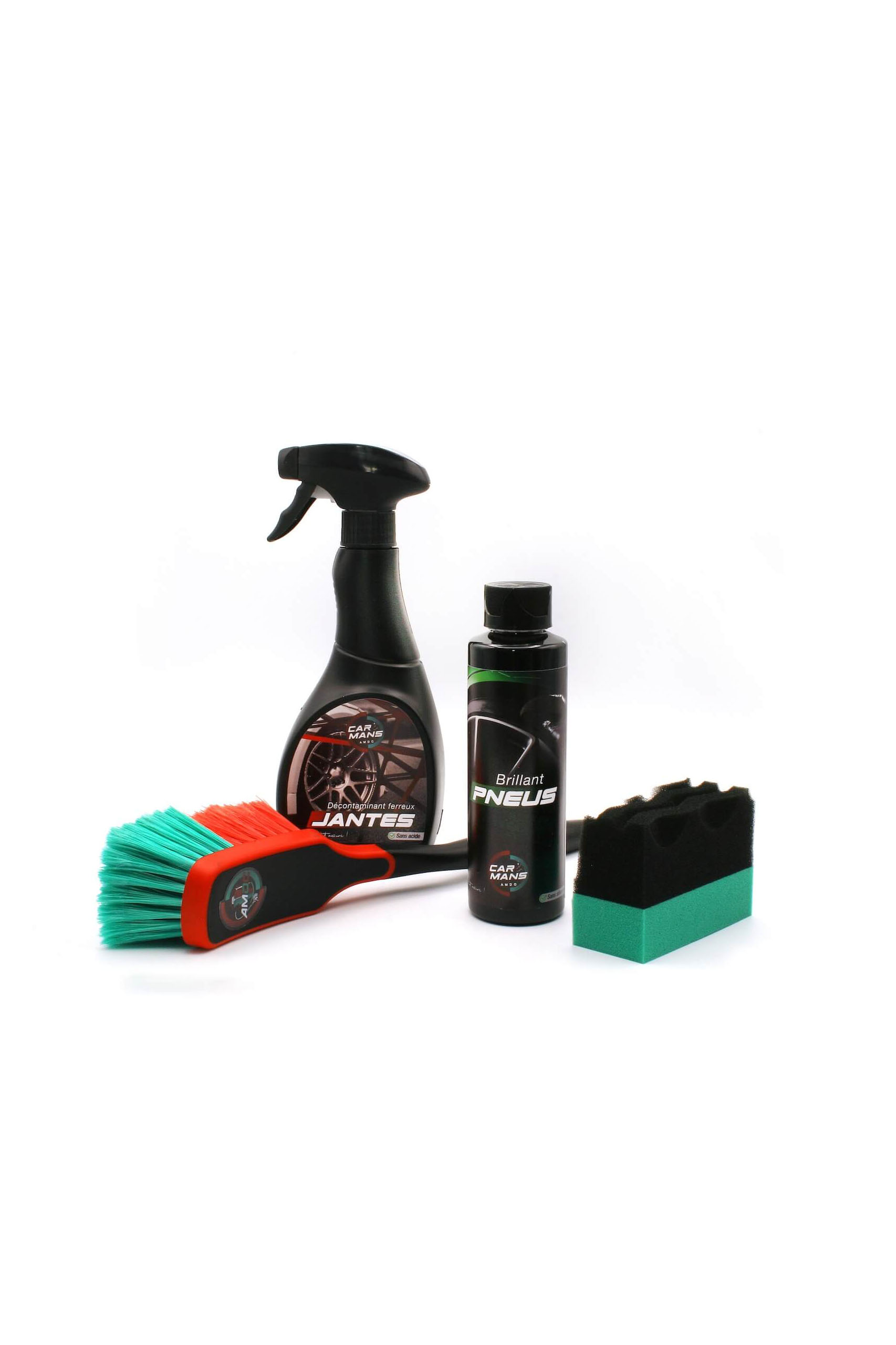 Brosse jantes + Nettoyant jantes + Brillant pneus + 1 éponge